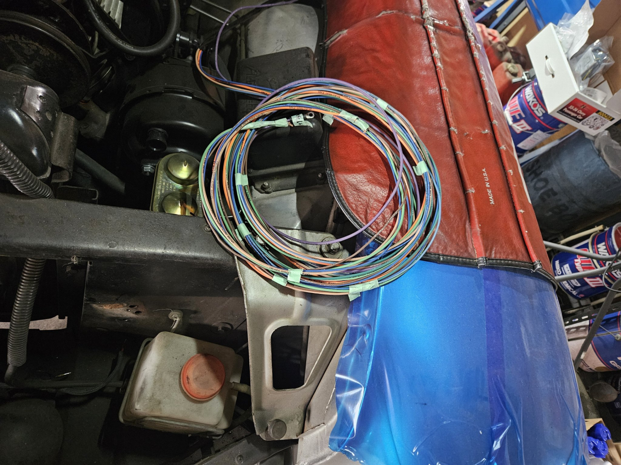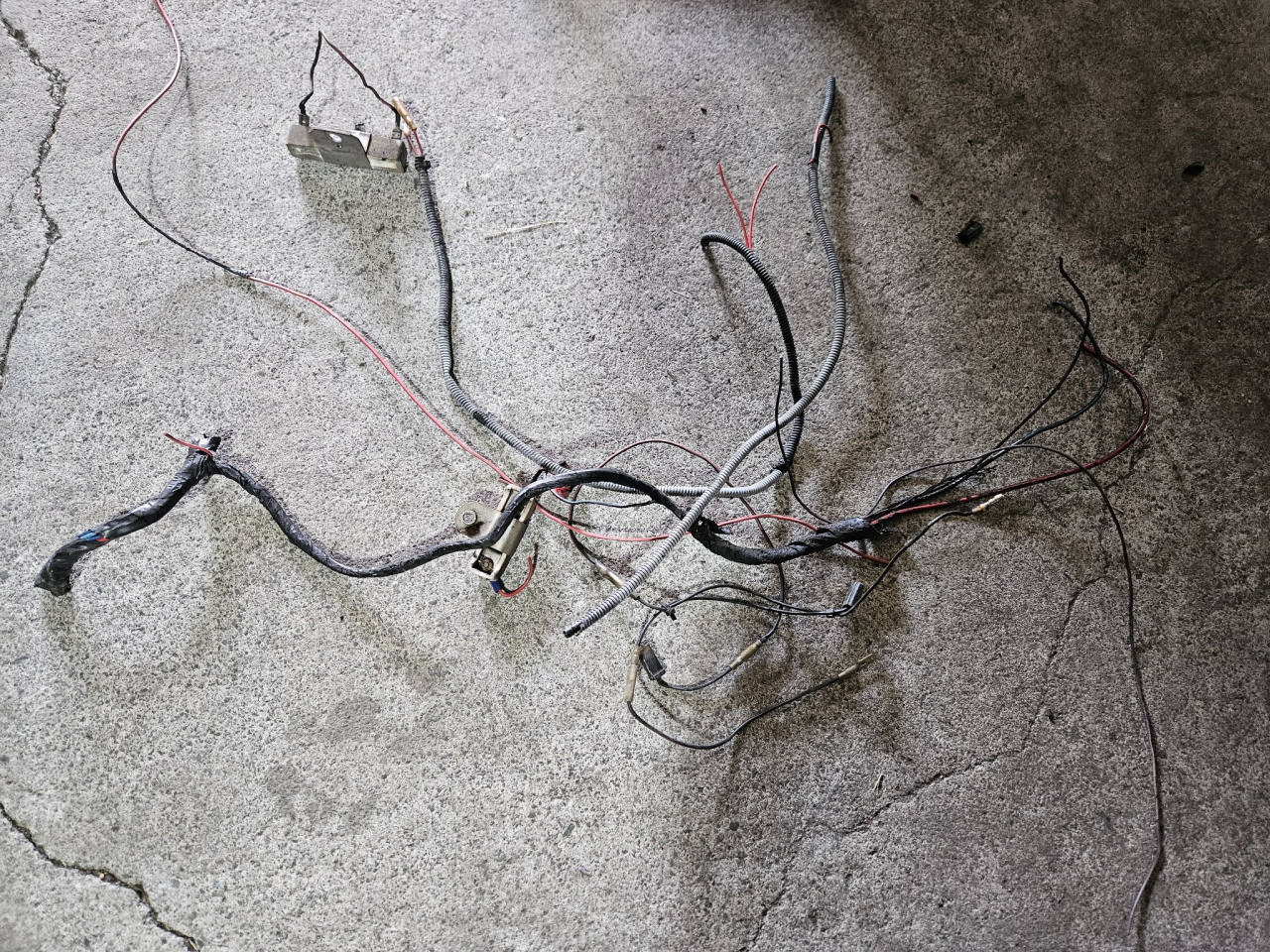 ■エンジン&フロントランプ配線取外し完了カチカチに劣化していました。タコ足配線、不要配線が多数ありました。