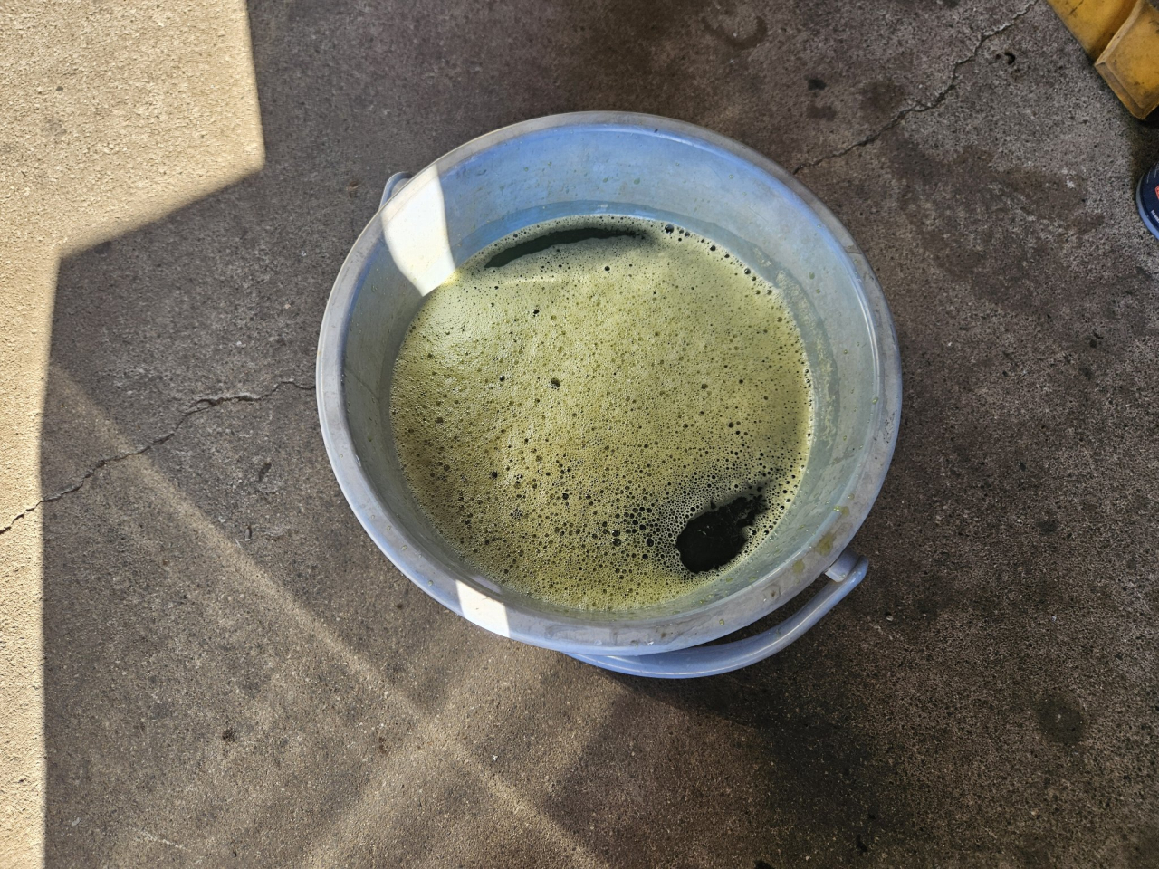 ■クーラント抽出完了劣化して粘度が出ているので泡立っています。